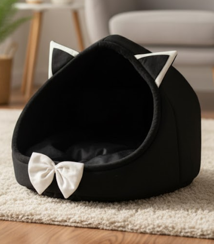 Batman-Inspired Cat House: Stylish igloo design with playful black and white accents