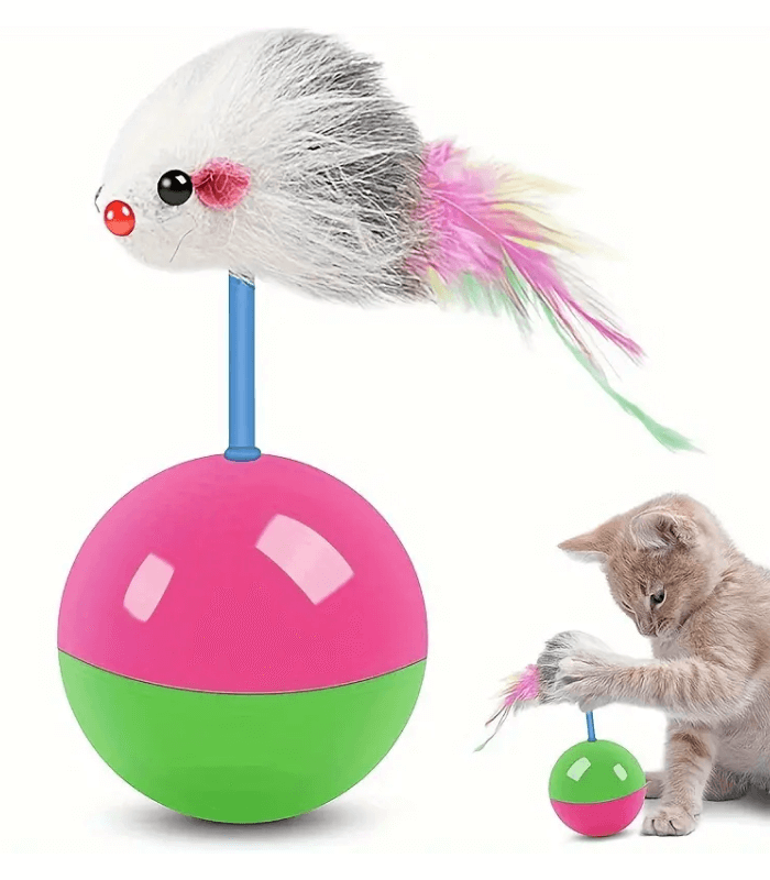 This toy combines a rolling ball with a dangling mouse, giving cats endless entertainment.