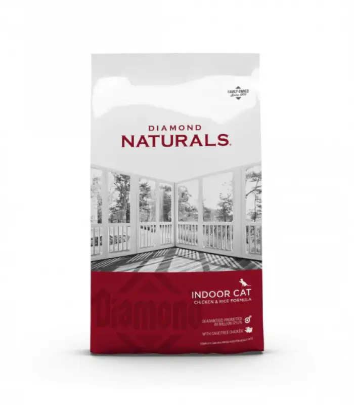 Indoor cats need special care, and Diamond Naturals Indoor Cat Food offers a formula rich in fiber and protein for their lifestyle.