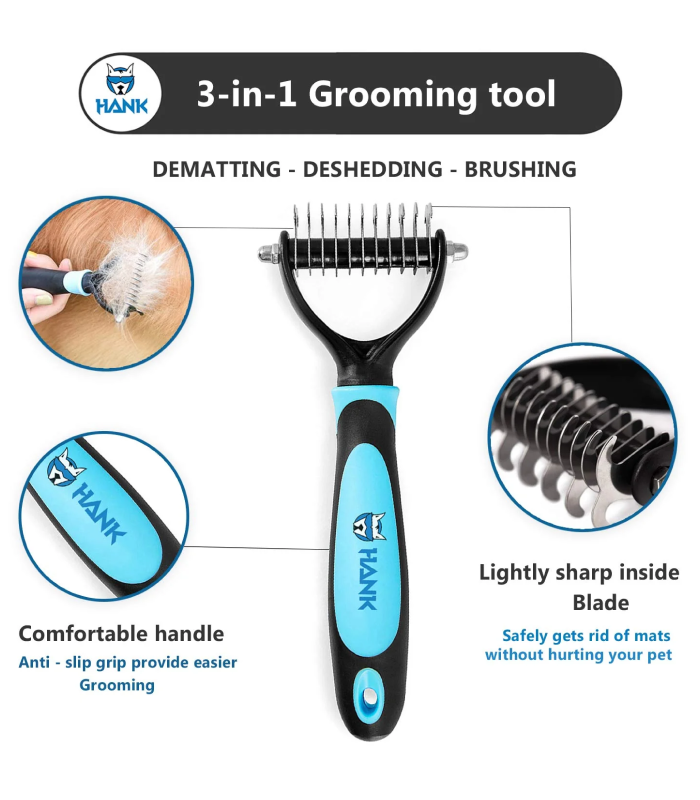 The Dual Head Safe Dematting Comb is perfect for pets with long or thick fur.