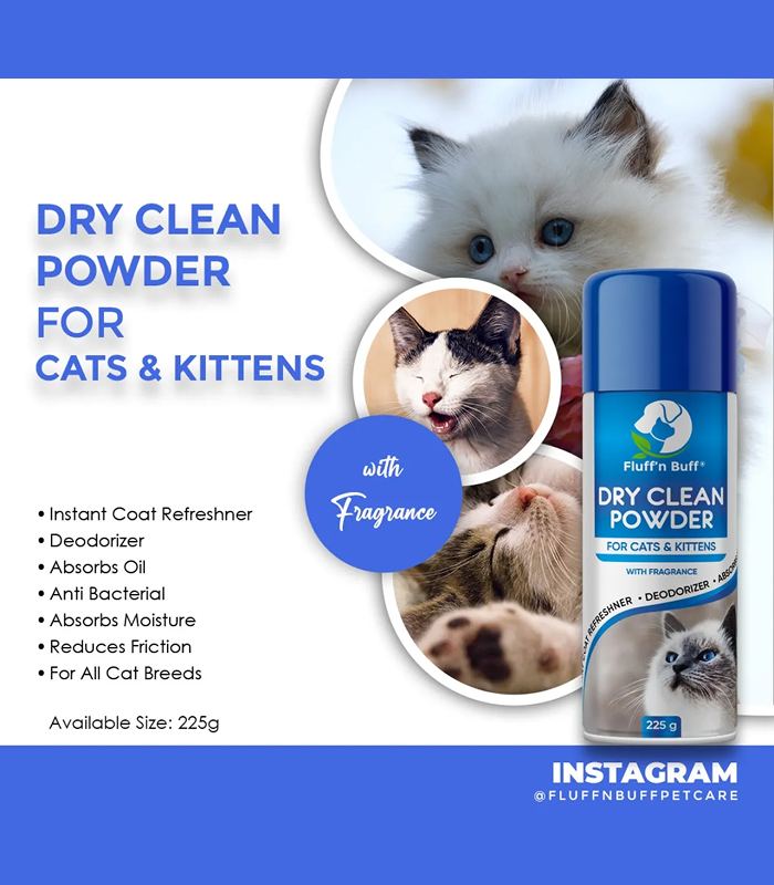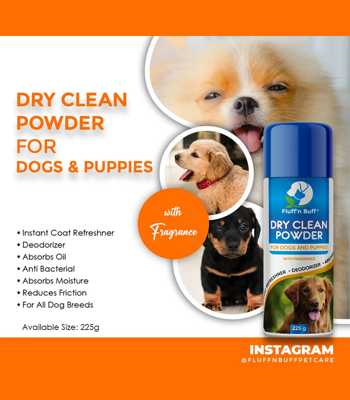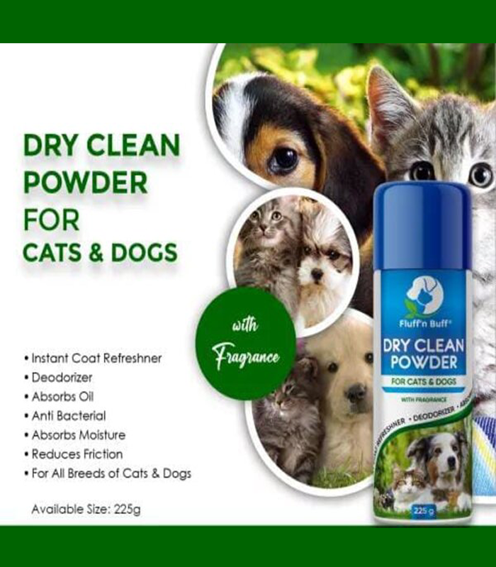 Keep your pets clean on-the-go with Fluff N Buff Dry Clean Powder.
