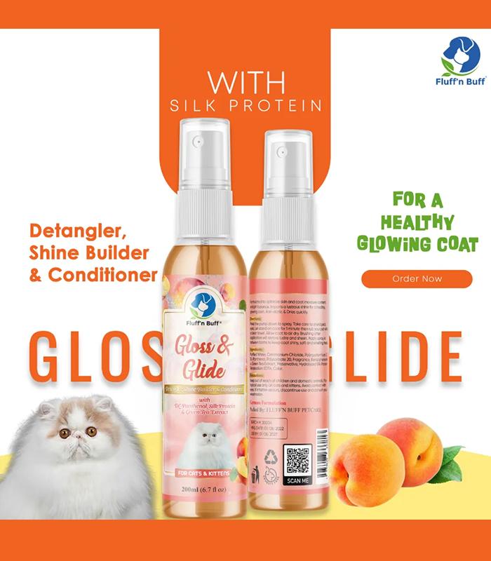 Gloss N Glide Sprays keep your pet’s coat shiny and fragrant with fruity scents.