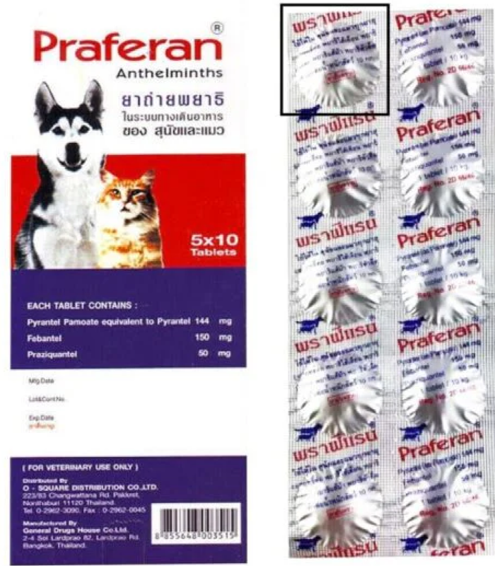 Praferan Deworming Tablet: Effective dewormer designed to help eliminate internal parasites in pets.