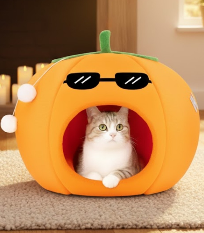 Pumpkin-Shaped Cat House: Unique design adds festive decor to your home