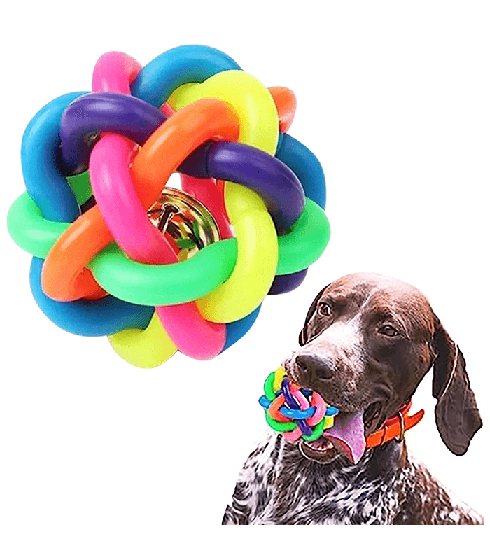 Rainbow Chew Ball Toy with Bell for Pets
