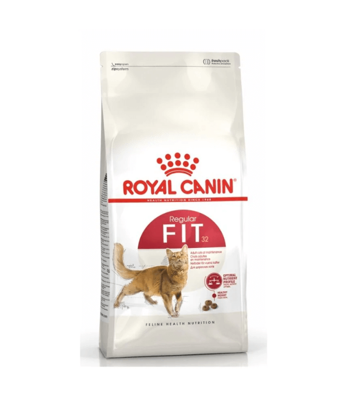 Royal Canin FIT 32 is tailored for moderately active adult cats, providing complete daily nutrition.
