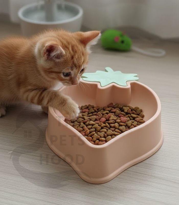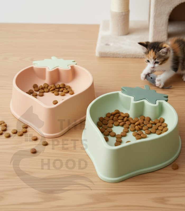 Charming Strawberry Design: A fun, strawberry-shaped bowl with a leaf top adds a playful touch to your pet’s mealtime.