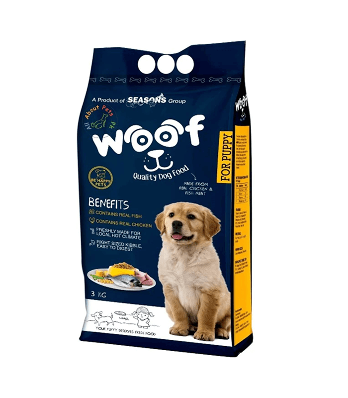 Woof Puppy Food provides young dogs with complete nutrition for strong growth and playful energy.