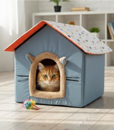 • Stylish House Design: Features a cute house shape with playful ears and whisker details